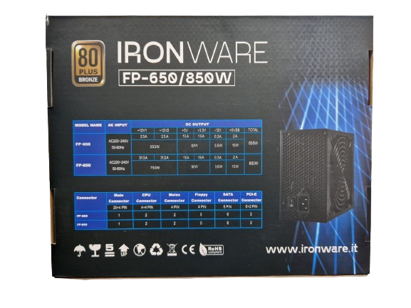 | POTENZA TOTALE CERTIFICATA | 850W |